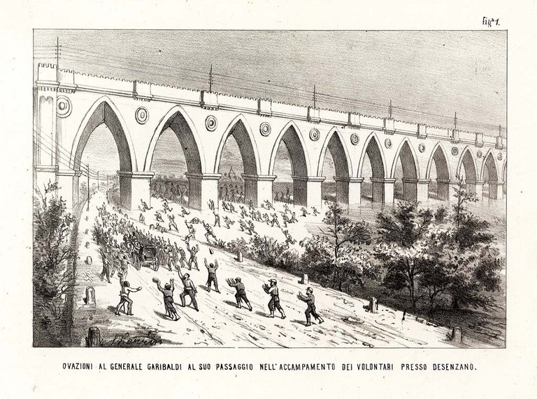 Ovazioni al Generale Garibaldi al suo passaggio nell'accampamento dei volontari presso Desenzano