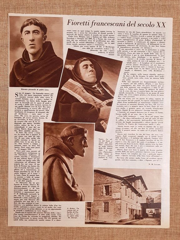 Padre Lino Maupas o Padre Lino Da giovane Salma Statua e casa di Parma anni 30 Rara stampa estratta da pubblicazione anni '30 Il frate francescano Padre Lino Maupas o Padre Lino Ritratto da giovane La salma Statua dello scultore G. Cacciani La casa nel suburbio di Parma dove morì Codice prodotto: II1887-006 Dimensioni: Cm 26,00 x 34,00