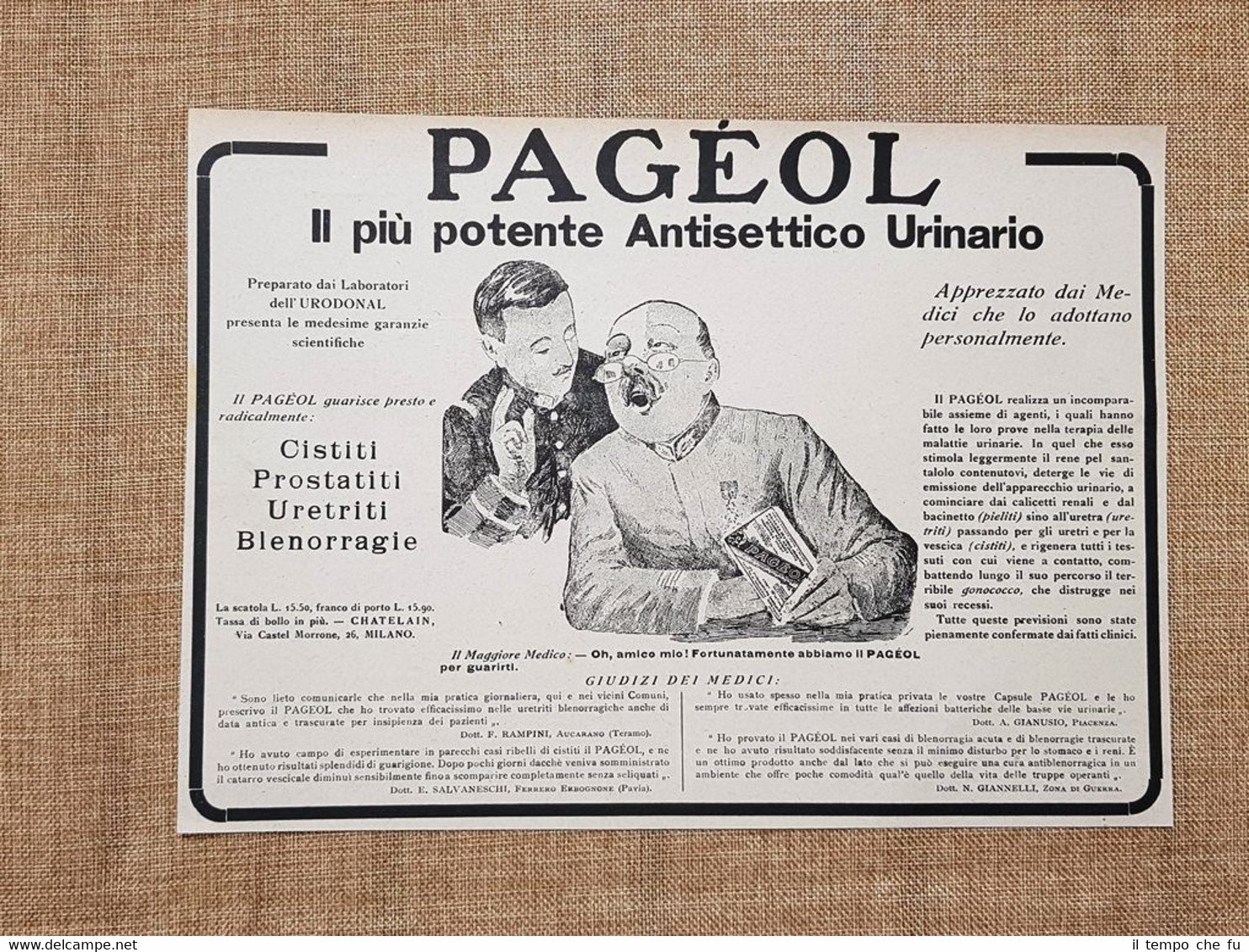 Pageol Antisettico urinario Chatelalin Milano Pubblicità del 1918
