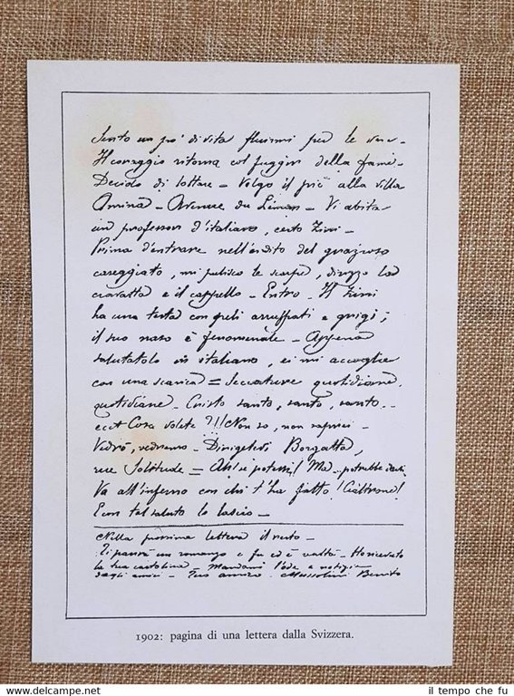 Pagina di una lettera scritta dalla Svizzera dal Duce Benito Mussolini nel 1902 Rara stampa estratta da pubblicazione di metà '900 Stampata su carta non retroscrittaPagina di una lettera scritta dalla Svizzera dal Duce Benito Mussolini nel 1902 Codice articolo: Stapo-058 Dimensioni: Cm 12,00 x 17,00