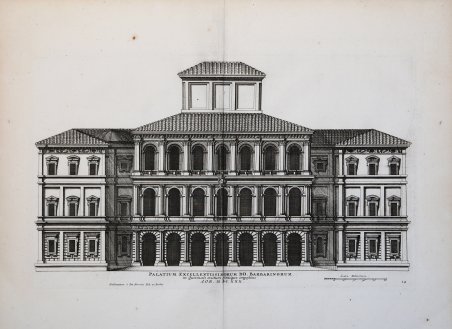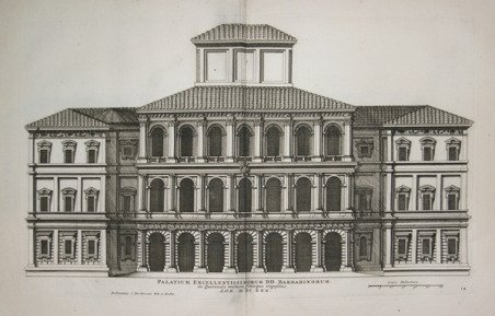Palatium Excellentissimorum DD. Barbarinorum in Quirinali erectum, fisisque impositus A. O. R. M DC XXX | Prints | SANDRART Joachim von