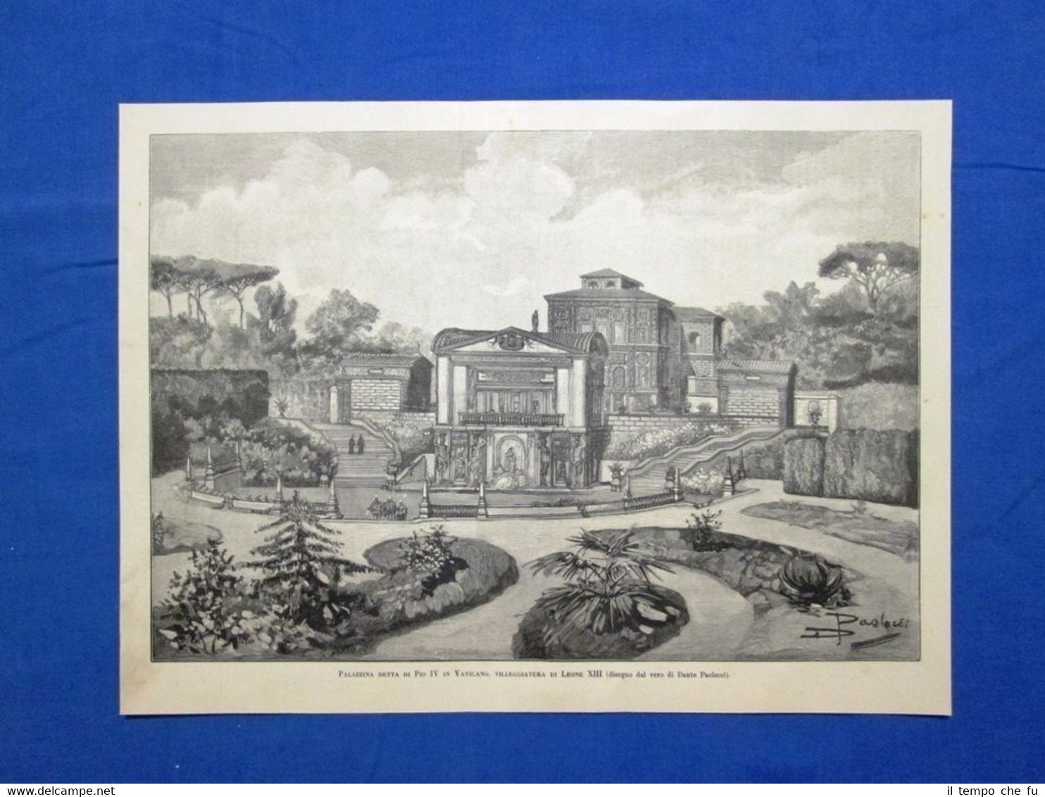 Rara Incisione Estratta da Rivista d'epoca del 1889.incisione che ha quindi oltre 125 anni! Palazzina detta di Pio IV in Vaticano,villeggiatura di Papa Leone XIII nel 1889 II1889-23 Dimensioni Cm 33,00 x 25,00 Qualora vogliate delle scansioni migliori contattateci, soddisferemo ogni vostra richiesta. PaypalCarta di creditoBonifico bancario Accuratamente adagiate su un cartoncino e protette da pellicola trasparente rigida,il tutto viene inserito dentro plico di adeguate dimensioni per proteggerne l'integrità.