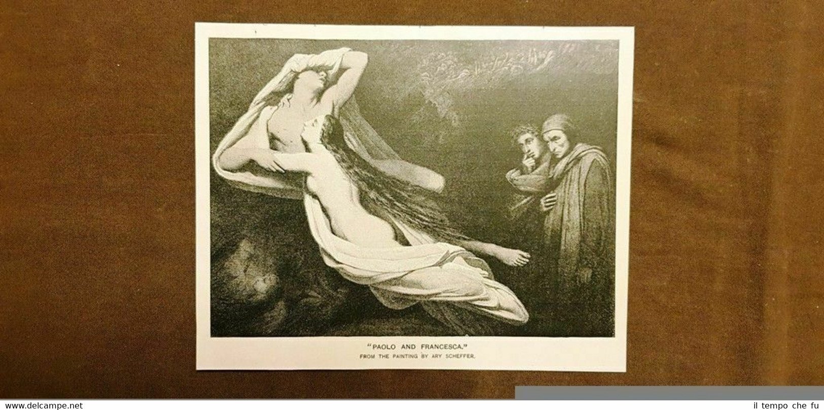 Paolo e Francesca osservati da Dante e Virgilio Quadro Scheffer Stampa del 1888