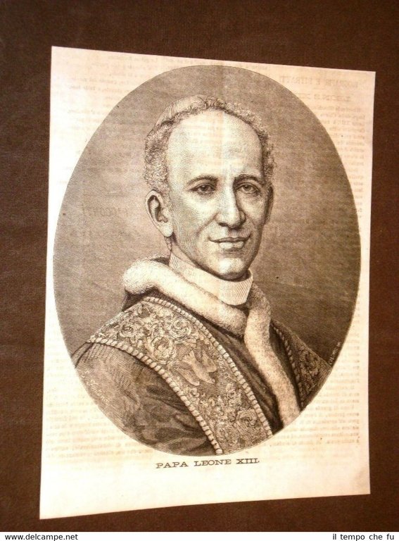 Rara incisione Estratta da Rivista d'epoca del 1878. .incisione che ha quindi oltre 136 anni! Papa Leone XIII nel 1875 Vincenzo Gioacchino Raffaele Luigi Pecci di Carpineto Romano EP1878-003 Dimensioni Cm 19,00 x 24,00 Qualora vogliate delle scansioni migliori contattateci, soddisferemo ogni vostra richiesta. PaypalCarta di creditoBonifico bancario Accuratamente adagiate su un cartoncino e protette da pellicola trasparente rigida,il tutto viene inserito dentro plico di adeguate dimensioni per proteggerne l'integrità.
