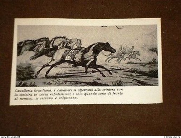 Rara Stampa Estratta da Rivista d'Epoca Paraná Cavalleria o Cavalieri del Brasile GRBLD-010T Dimensioni Cm 11,50 x 7,00 Qualora vogliate delle scansioni migliori contattateci, soddisferemo ogni vostra richiesta. Paypal Carta di credito Bonifico bancario Accuratamente adagiate su un cartoncino e protette da pellicola trasparente rigida il tutto viene inserito dentro plico di adeguate dimensioni per proteggerne l'integrità