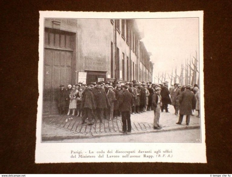 Rara Stampa Estratta da Rivista d'epoca del 1931 Parigi nel 1931 Coda di disoccupati davanti gli uffici del Ministero del lavoro II1931-016T Dimensioni Cm 11,50 x 11,00 Qualora vogliate delle scansioni migliori contattateci, soddisferemo ogni vostra richiesta. Paypal Carta di credito Bonifico bancario Accuratamente adagiate su un cartoncino e protette da pellicola trasparente rigida il tutto viene inserito dentro plico di adeguate dimensioni per proteggerne l'integrità
