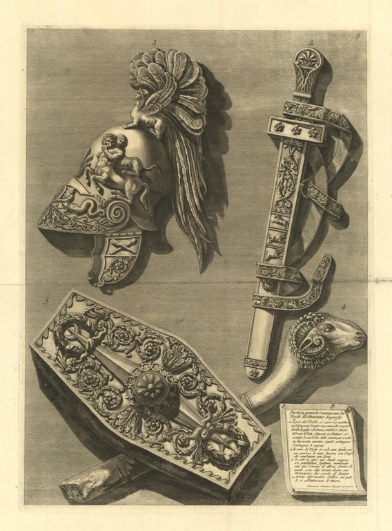 Parti in grande restaurate dei Trofei di Ottaviano Augusto. 1 A pie del Trofeo si osserva .