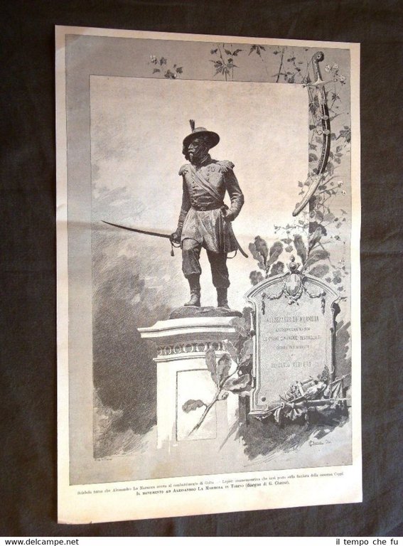 Rara Incisione Estratta da Rivista d'epoca del 1886 Per i 50 anni dalla nascita dei Bersaglieri Torino nel 1886, Monumento ad Alessandro La Marmora Spada che aveva nel combattimento di Goito Lapide che si esporrà presso la caserma Ceppi II1886-026T Cm 24,00 x 36,00 Qualora vogliate delle scansioni migliori contattateci, soddisferemo ogni vostra richiesta. Paypal Carta di credito Bonifico bancario Accuratamente adagiate su un cartoncino e protette da pellicola trasparente rigida il tutto viene inserito dentro plico di adeguate dimensioni per proteggerne l'integrità