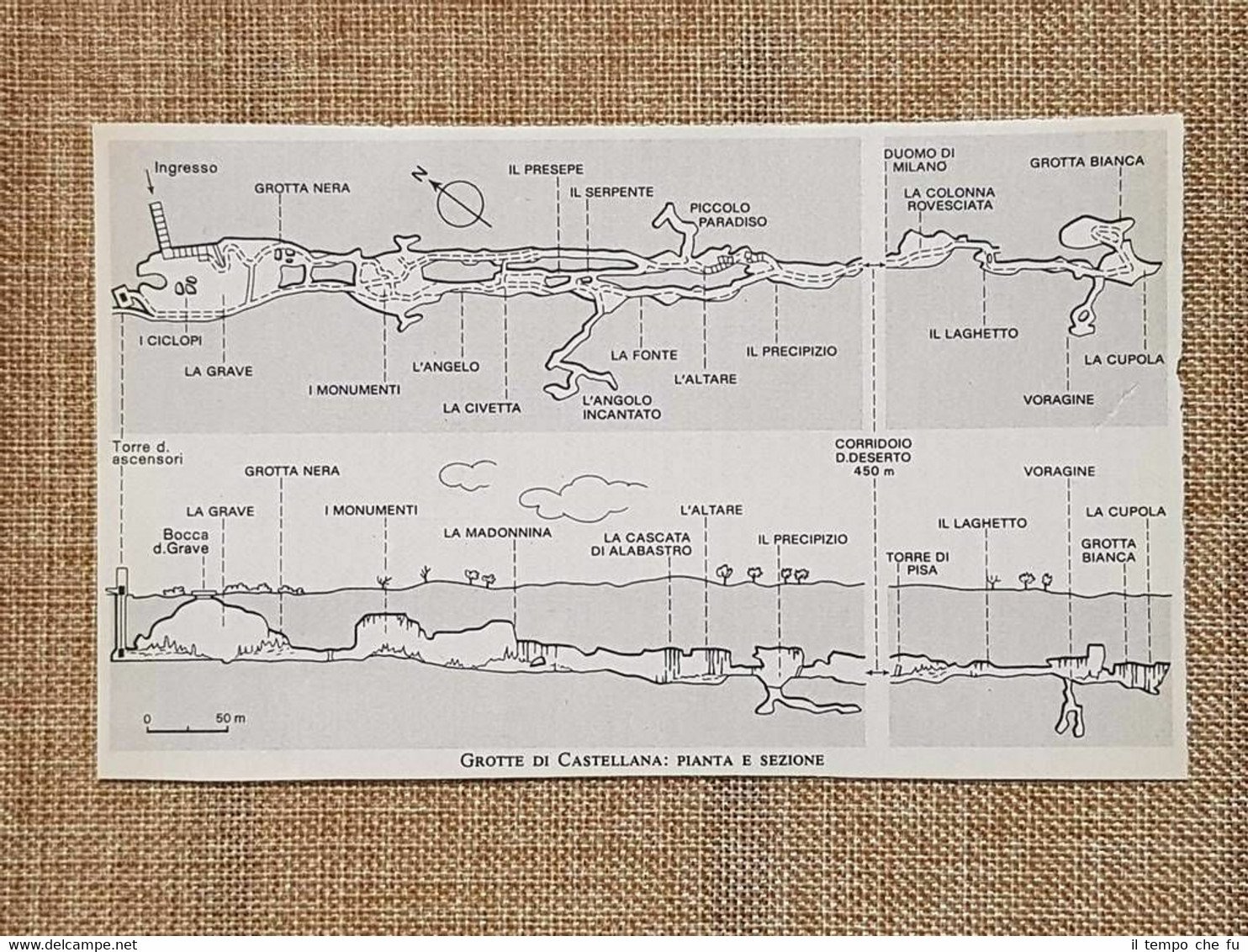 Rara stampa estratta da pubblicazione del 1978 Edita dal Touring Club d'Italia Pianta e sezione del 1978 Grotte di Castellana Puglia Codice articolo: VIP-075 Dimensioni: Cm 9,00 x 14,00 Paypal Carta di credito Bonifico bancario Spedizione con posta ordinaria o raccomandata scelta dall'Acquirente nel momento del pagamento Clicca qui per accedere al nostro Store ed al suo sterminato archivio