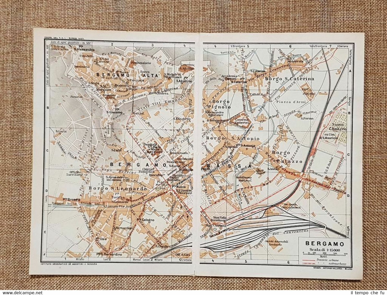 Pianta o piantina del 1914 La città di Bergamo Lombardia T.C.I.