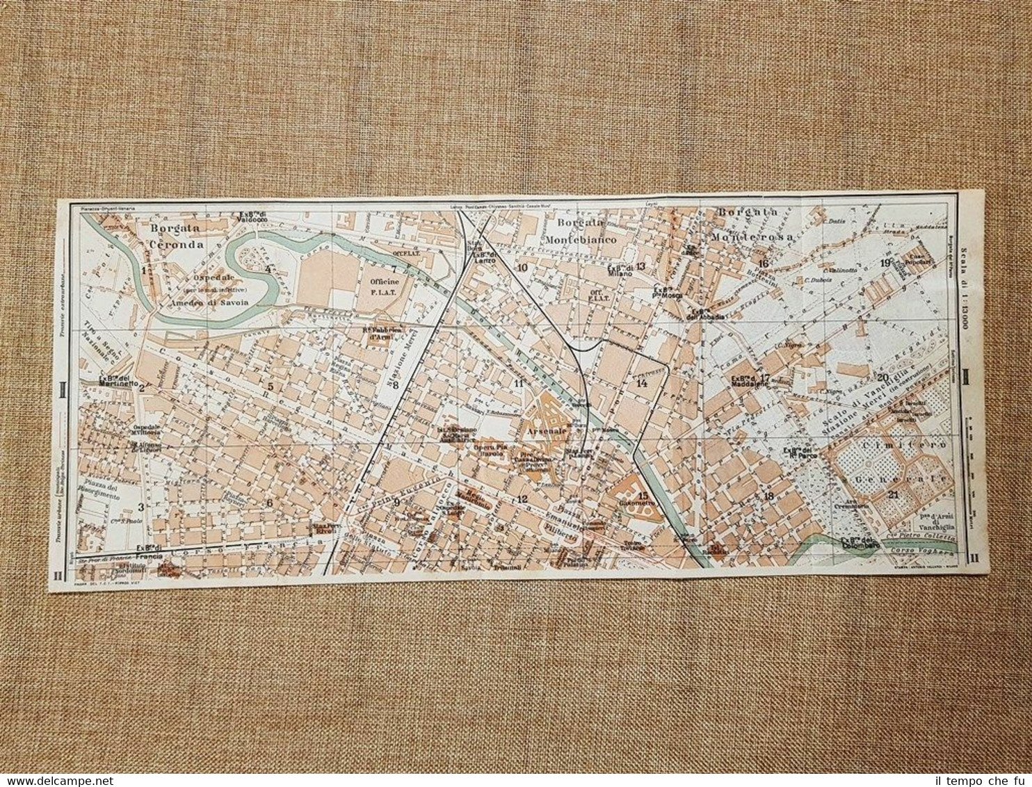 Rara stampa estratta da pubblicazione del 1923 Edita dal Touring Club d'Italia Pianta o piantina del 1923 La città di Torino Borgata Ceronda Piemonte Scala: 1:13.000 Codice articolo: VIP-085 Dimensioni: Cm 38,00 x 16,00 Paypal Carta di credito Bonifico bancario Spedizione con posta ordinaria o raccomandata scelta dall'Acquirente nel momento del pagamento Clicca qui per accedere al nostro Store ed al suo sterminato archivio