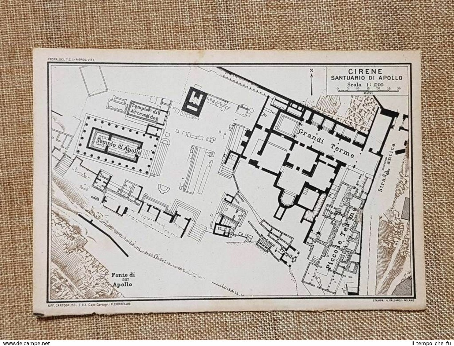 Pianta o piantina del 1929 Cirene Santuario d'Apollo Libia Touring Club Italiano