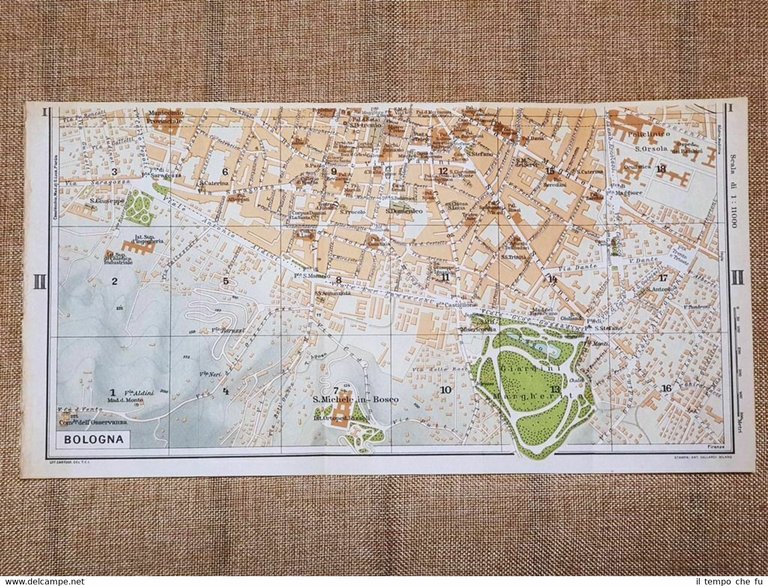 Pianta o piantina del 1957 La città di Bologna Zona sud Emilia Romagna