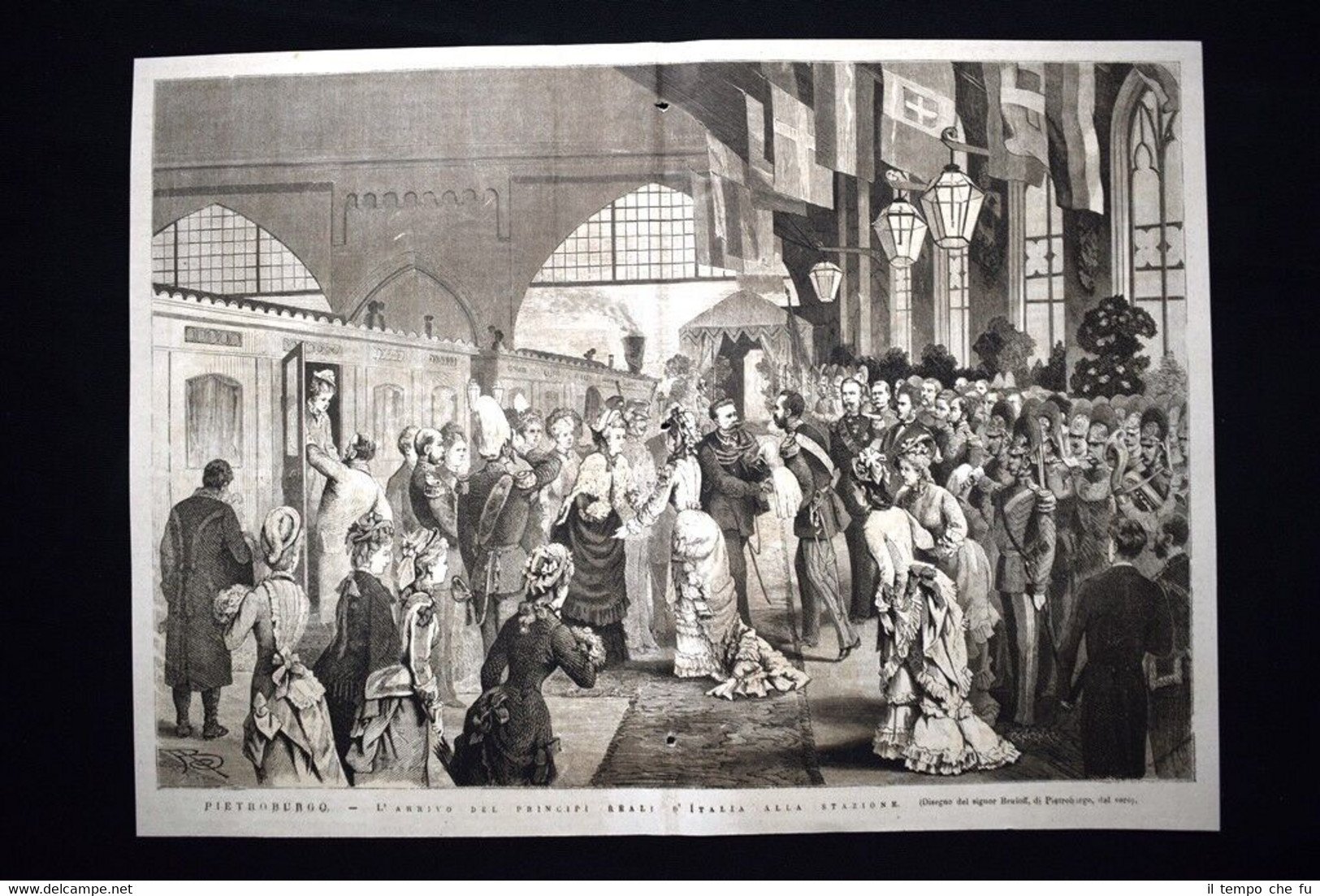 Pietroburgo-Arrivo dei Principi Reali d'Italia alla Stazione Incisione del 1876