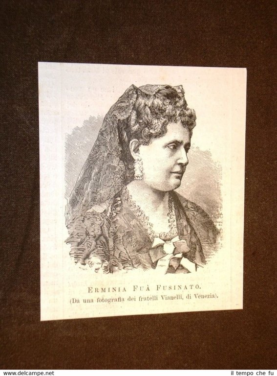 Rara Incisione Estratta da Rivista d'epoca del 1877 . .incisione che ha quindi oltre 137 anni! Rarissimo ritratto Poetessa Erminia Fuà Fusinato Rovigo, 23 ottobre 1834 - Roma, 30 settembre 1876 II1877-016 Dimensioni Cm 9,00 x 11,00 Qualora vogliate delle scansioni migliori contattateci, soddisferemo ogni vostra richiesta. PaypalCarta di creditoBonifico bancario Accuratamente adagiate su un cartoncino e protette da pellicola trasparente rigida,il tutto viene inserito dentro plico di adeguate dimensioni per proteggerne l'integrità.