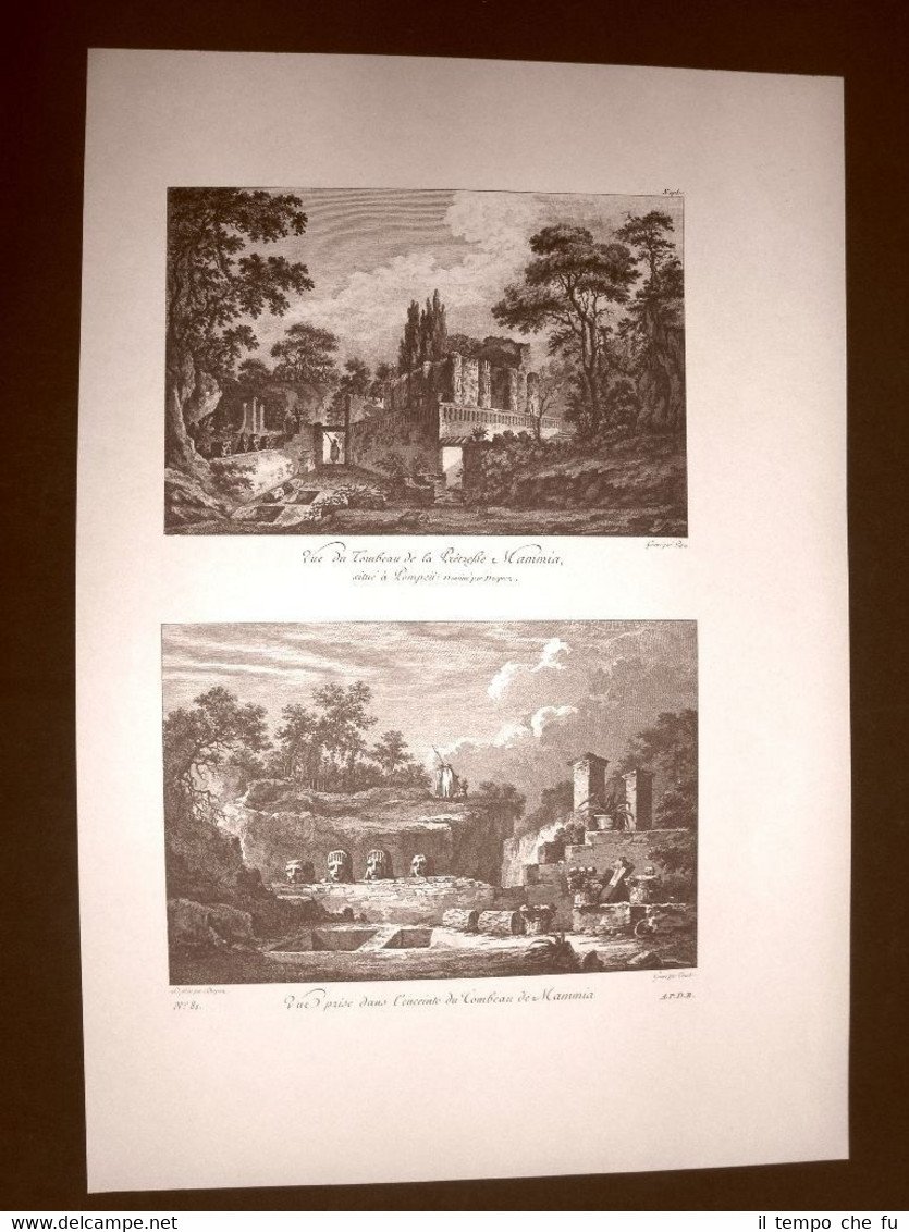 Grande litografia Stampata su carta speciale e non retroscritta Ristampa anni '50 di una celebre tavola facente parte della rara opera del 1785 "Voyage Pittoresque ou description des Royaumes de Naples et de Sicile" Scritta dall'Abate Jean Claude Richard de Saint - Non Pompei Vedute della tomba di Mamia Litografie - 344 Dimensioni Cm 34,00 x 50,00 Jean-Claude Richard de Saint-Non, meglio noto come Abate di Saint-Non, o Abbé de Saint-Non (Parigi, 1727 - 25 novembre 1791), è stato un incisore, disegnatore, umanista, nonché archeologo, mecenate e viaggiatore francese. Egli fu destinato dalla famiglia alla vita religiosa e per questa ragione nel 1749 poté anche entrare nel parlamento di Parigi. Per la sua opposizione alla bolla Unigenitus fu esiliato a Poitiers. Tra il 1759 ed il 1761 visitò l'Inghilterra e successivamente l'Italia, rimanendo particolarmente impressionato dal Sud Italia, soprattutto dalla Calabria e dalla Sicilia. Scrisse un'opera enciclopedica illustrata da lui stesso intitolata Voyage pittoresque ou Description des Royaumes de Naples et de Sicile, dove riporta resoconti ed impressioni da lui raccolte tra il 1781 ed il 1786. Questa sua opera è stata illustrata con disegni dei migliori artisti, in parte riprodotti proprio dallo stesso Saint-Non. Qualora vogliate delle scansioni migliori contattateci, soddisferemo ogni vostra richiesta. PaypalCarta di creditoBonifico bancario La litografia verrà arrotolata e spedita con tubo postale o plico di adeguate dimensioni per proteggerne l'integrità.