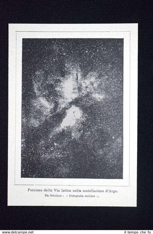 Rara stampa Estratta da introvabile e pregiata opera d'epoca dei primissimi del 1900 Porzione della Via Lattea nella costellazione d'Argo KXIX-076 Dimensioni Cm 10,00 x 14,00 Qualora vogliate delle scansioni migliori contattateci, soddisferemo ogni vostra richiesta. PaypalCarta di creditoBonifico bancario Accuratamente adagiate su un cartoncino e protette da pellicola trasparente rigida,il tutto viene inserito dentro plico di adeguate dimensioni per proteggerne l'integrità.