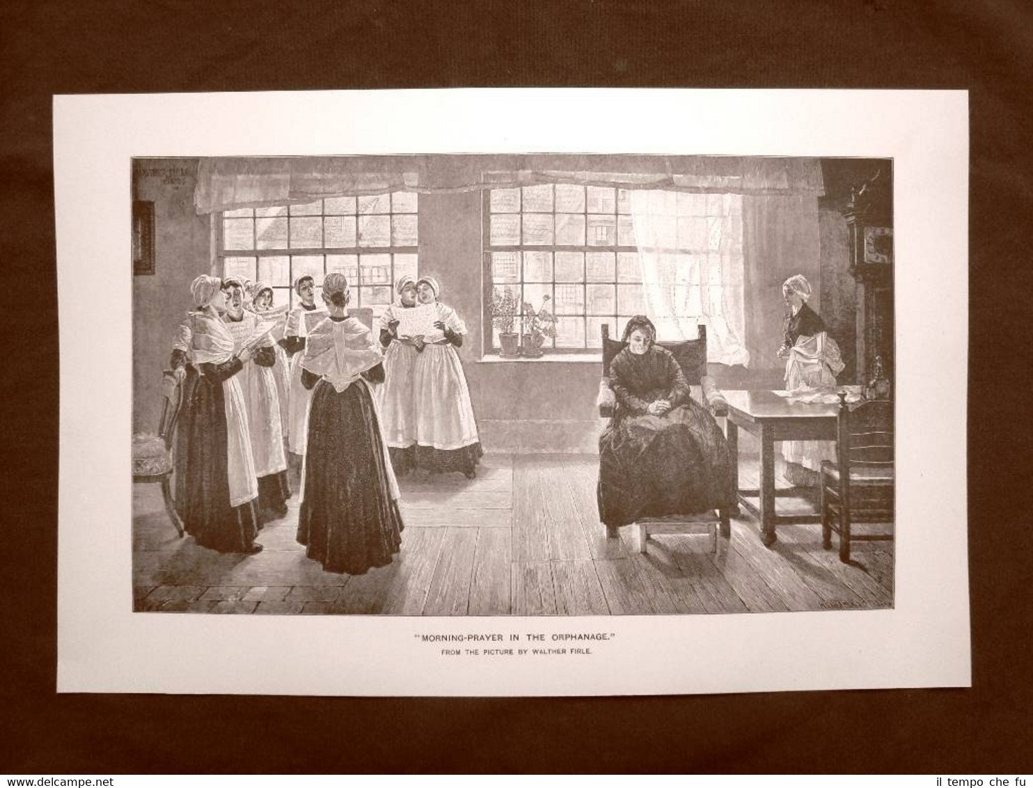 Preghiera del mattino nell'orfanotrofio Quadro di Walther Firle Stampa del 1888