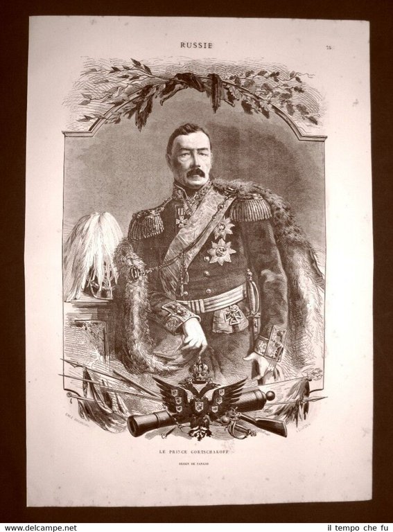 Rara e grande incisione estratta da pubblicazione d'epoca del 1865. .incisione che ha quindi oltre 153 anni! Il Principe Pyotr Dmitrievich Gorchakov Disegno di Bayard + Esercito russo Russia Disegno di H. De Montaut Terre del Mondo - 003 Dimensioni Fronte/retro Cm 29,00 x 41,00 + Cm 29,00 x 41,00 Qualora vogliate delle scansioni migliori contattateci, soddisferemo ogni vostra richiesta. Paypal Carta di credito Bonifico bancario Accuratamente adagiate su un cartoncino e protette da pellicola trasparente rigida, il tutto viene inserito dentro plico di adeguate dimensioni per proteggerne l'integrità.