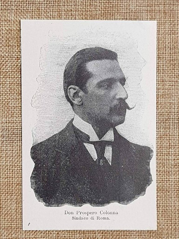 Rara stampa Estratta da pubblicazione del 1899 Prospero Colonna di Paliano, nato a Napoli il 18 luglio 1858 e morto a Roma il 16 settembre 1937, fu nobile italiano, IV duca di Rignano e principe di Sonnino, figlio di Giovanni Andrea Colonna e di Isabella Alvarez di Toledo, sposò Maria Ignazia Massimo ultima erede dei Massimo d’Aracoeli, fu deputato per la Destra storica e nominato senatore nel 1900, sindaco di Roma in due mandati dal 1899 al 1904 e dal 1914 al 1919, durante il primo promosse opere pubbliche come il traforo sotto il Quirinale e accolse l’assegnazione dei Giochi Olimpici del 1908 poi rinunciati, durante la Grande Guerra contribuì all’organizzazione sanitaria militare come presidente dei cavalieri italiani del Sovrano Militare Ordine di Malta, lasciando un segno nella vita politica e amministrativa della capitale. Dimensioni: Cm 7,00 x 11,00 Codice prodotto NEDA-123 PayPal Carta di credito Bonifico bancario Inserita dentro plico di adeguate dimensioni per proteggerne l'integrità Spedizione con posta ordinaria o raccomandata scelta dall’Acquirente nel momento del pagamento Clicca qui per accedere al nostro Store ed al suo sterminato archivio