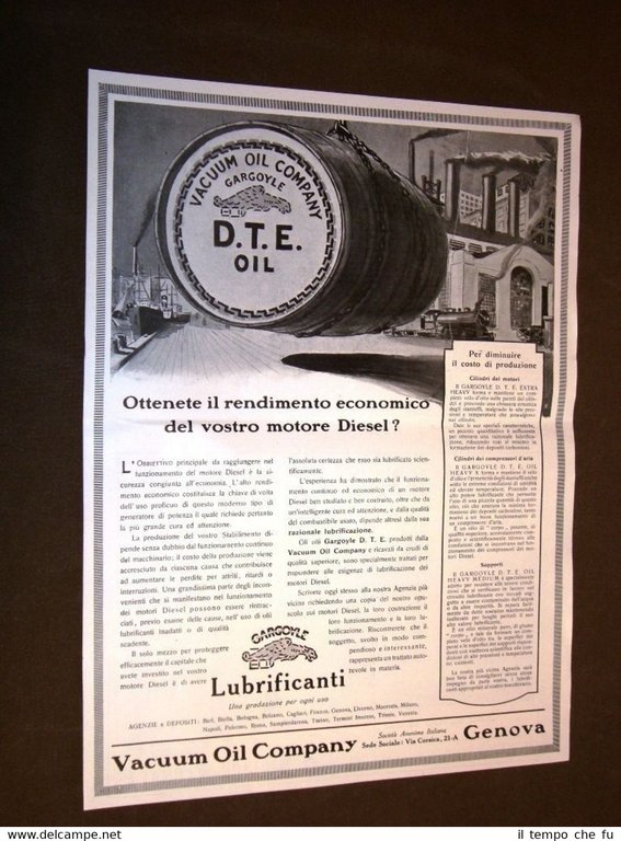 Pubblicità dei primi del 1900 Olio Gargoyle della Vacuum Oil Company