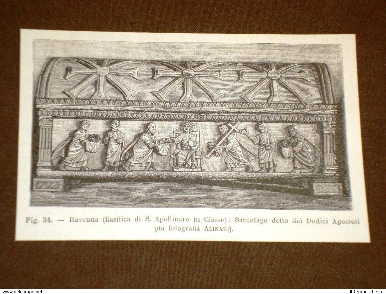 Rara veduta di Ravenna di fine '800 Basilica Sant'Apollinare Sarcofago Apostoli