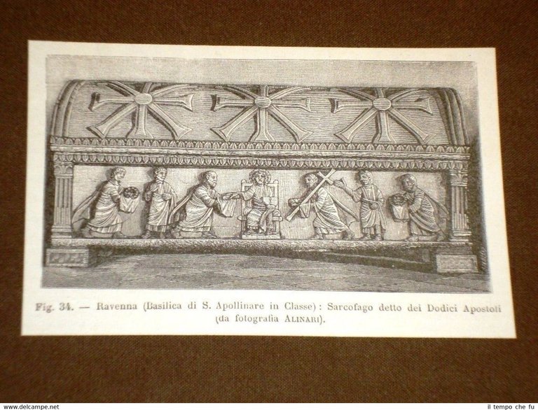 Rara Incisione Estratta da Rivista d'epoca dei fine 1800 Rara veduta di Ravenna di fine '800 Basilica di Sant'Apollinare in Classe Sarcofago dei 12 Apostoli Ved-012 Dimensioni Cm 13,00 x 9,00 Qualora vogliate delle scansioni migliori contattateci, soddisferemo ogni vostra richiesta. PaypalCarta di creditoBonifico bancario Accuratamente adagiate su un cartoncino e protette da pellicola trasparente rigida,il tutto viene inserito dentro plico di adeguate dimensioni per proteggerne l'integrità.