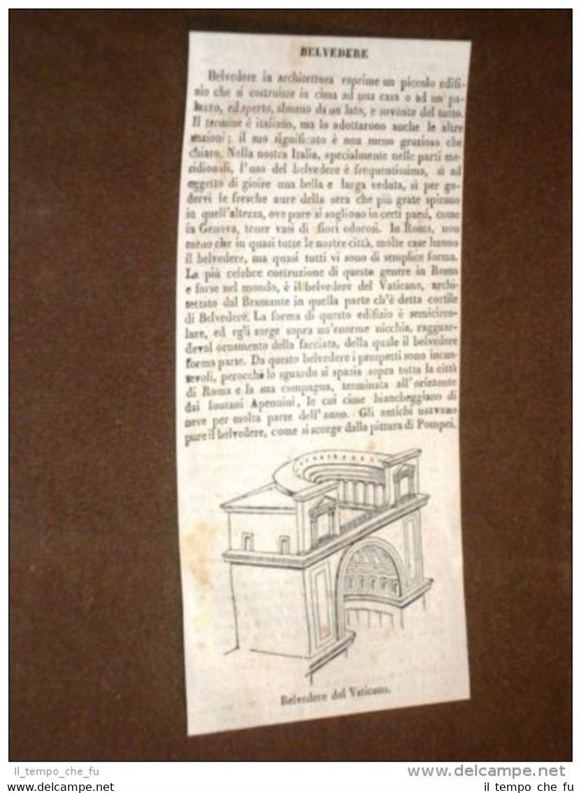 Rarissima incisione del 1836 Il belvedere del Vaticano