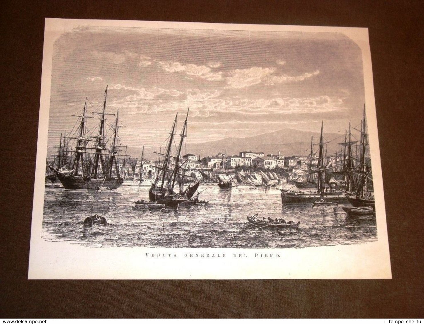 Rarissima veduta del Pireo nel 1877 Attica - Grecia