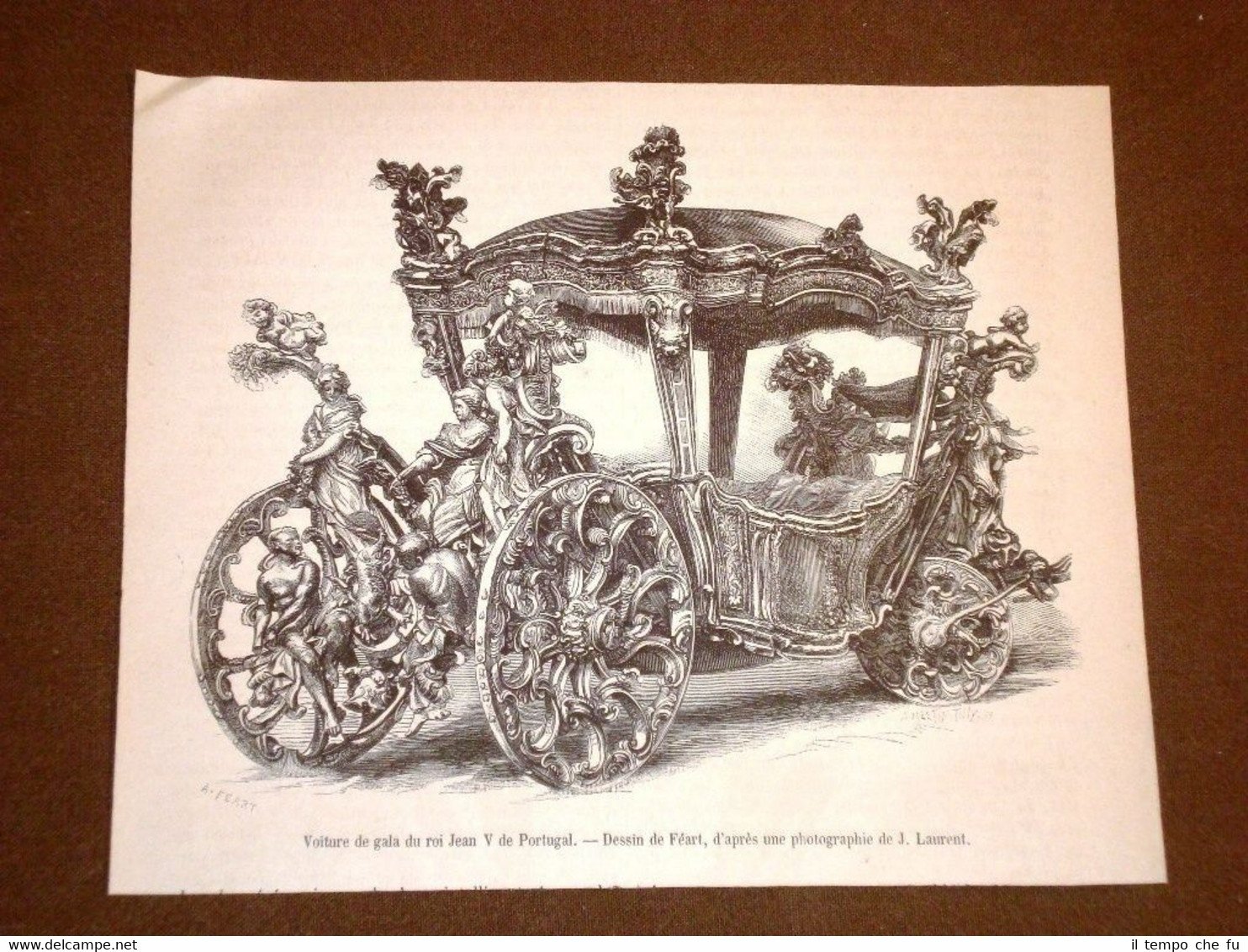 Rasissima incisione del 1873 Carrozza di gala di Re Jean V del Portogallo