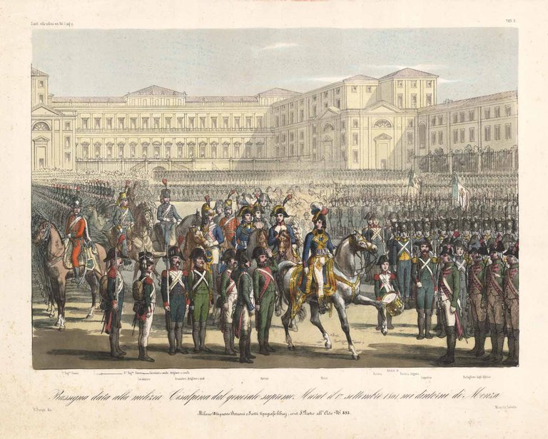 Rassegna data alla milizia Cisalpina dal generale supremo Murat il 17 settembre 1801 nei dintorni di Monza