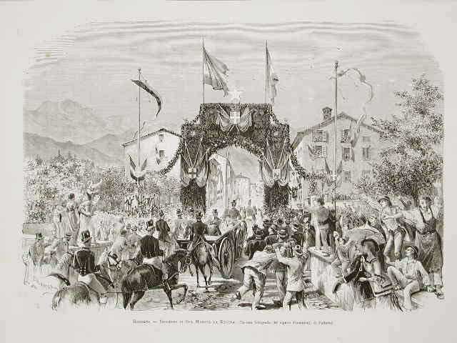 Il corteo reale entra in Recoaro, acclamato dalla folla. Testo al verso