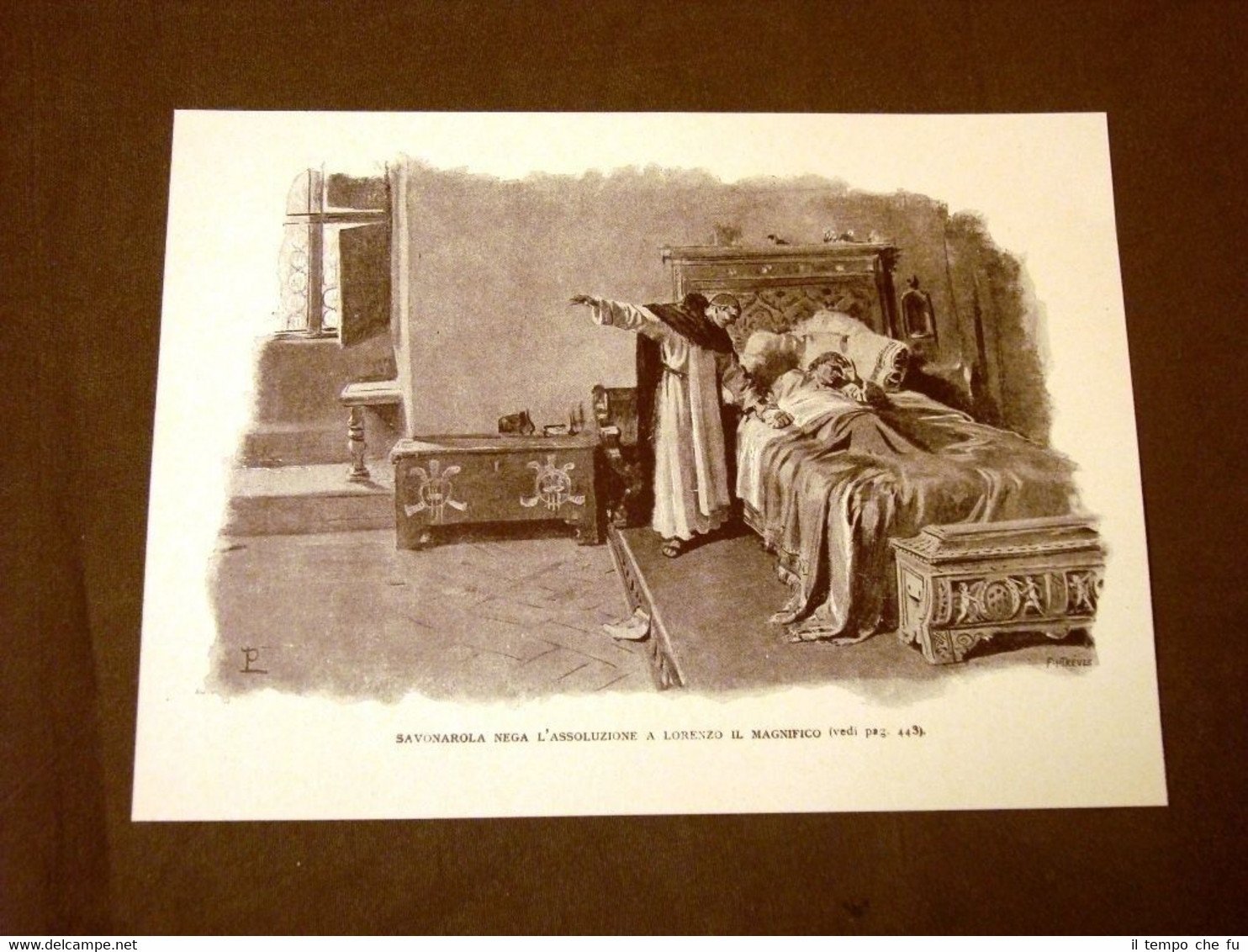 Rinascimento in Italia Savonarola Lorenzo il Magnifico Incisione di L. Pogliaghi