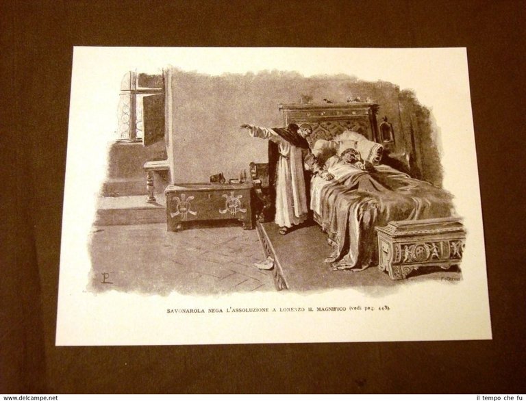 Rara stampa Estratta da pubblicazione dei primi del 1900 Il Rinascimento in Italia Savonarola nega l'assoluzione a Lorenzo il Magnifico Incisione di Lodovico Pogliaghi SDI-021 Dimensioni Cm 21,00 x 16,00 Qualora vogliate delle scansioni migliori contattateci, soddisferemo ogni vostra richiesta. PaypalCarta di creditoBonifico bancario Accuratamente adagiate su un cartoncino e protette da pellicola trasparente rigida,il tutto viene inserito dentro plico di adeguate dimensioni per proteggerne l'integrità.