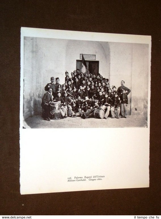 Rara stampa Estratta da Rivista d'epoca Il Risorgimento in Italia Palermo nel 1860 Ragazzi dell'Istituto Militare Garibaldi Ris.Fot.-005 Dimensioni Cm 18,00 x 21,00 Qualora vogliate delle scansioni migliori contattateci, soddisferemo ogni vostra richiesta. PaypalCarta di creditoBonifico bancario Accuratamente adagiate su un cartoncino e protette da pellicola trasparente rigida,il tutto viene inserito dentro plico di adeguate dimensioni per proteggerne l'integrità.