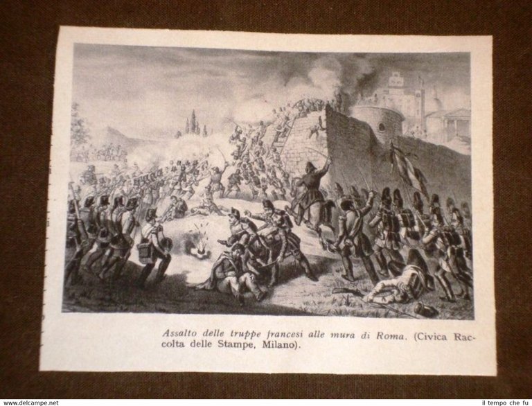 Rara Stampa Estratta da Rivista d'Epoca Risorgimento Italiano Assalto delle truppe di Francia alle mura di Roma GRBLD-017T Dimensioni Cm 12,00 x 10,00 Qualora vogliate delle scansioni migliori contattateci, soddisferemo ogni vostra richiesta. Paypal Carta di credito Bonifico bancario Accuratamente adagiate su un cartoncino e protette da pellicola trasparente rigida il tutto viene inserito dentro plico di adeguate dimensioni per proteggerne l'integrità
