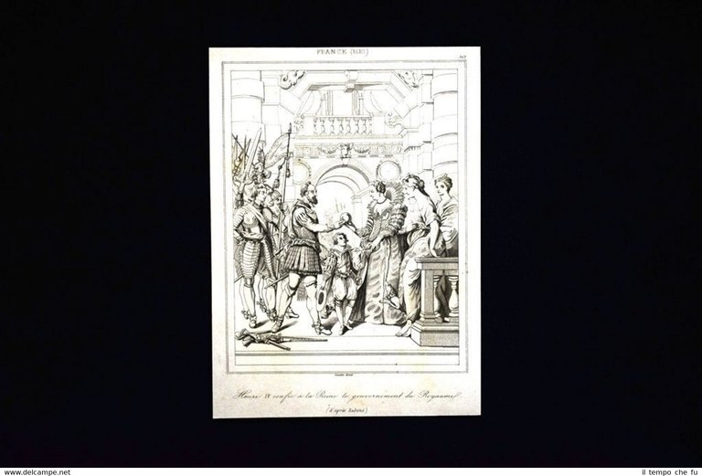 Incisione su acciaio Stampata su carta non retroscritta Estratta da pubblicazione del 1850. .incisione che ha quindi oltre 166 anni! Tavola facente parte della rara opera pubblicata in Parigi del 1850 "L'Univers Pittoresque" Autore: M.Ph. Le Blas Editore: Firmin Didot Le Roi Henri IV confie à la Reine Marie de Medicis le gouvernement du royaume France UP-025 Dimensioni Cm 12,00 x 16,00 Qualora vogliate delle scansioni migliori contattateci, soddisferemo ogni vostra richiesta PaypalCarta di creditoBonifico bancario Accuratamente adagiate su un cartoncino e protette da pellicola trasparente rigida,il tutto viene inserito dentro plico di adeguate dimensioni per proteggerne l'integrità