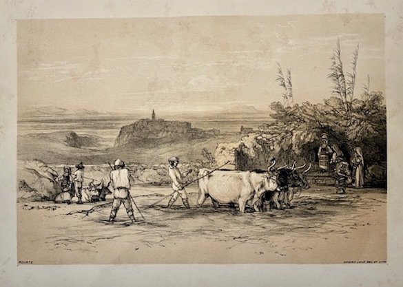 Litografia originale in tonalità seppia (cm. 36,2x24,3 più ampi margini bianchi) tratta dall’opera ‘Views of Rome and its Environs’. Esemplare in ottimo stato di conservazione. Non comune.‘Views of Rome and its Environs’ è sicuramente l’opera di viaggio più importante realizzata dallo scrittore e artista inglese Edward Lear assieme alle ‘Illustrated excursions in Italy’ del 1846 ed ai ‘Journals of a Landscape Painter in Southern Calabria and the Kingdom of Naples’ (1852). Le belle tavole, di gusto romantico, raffigurano scorci inconsueti della città di Roma e piccoli borghi e paesi dei suoi dintorni. La Regina Vittoria, impressionata dalla bellezza delle litografie, chiese all’autore di farle da insegnante di disegno per un paio di mesi presso la residenza di Osborne House.