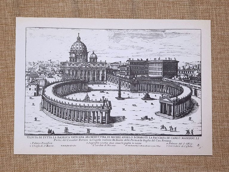 Roma Basilica Vaticana e veduta laterale Incisione Battista Falda 1665 Ristampa Rara stampa estratta da pubblicazione di metà '900 Roma Veduta di tutta la Basilica Vaticana e Veduta laterale con la cupola Codice prodotto: GEO-176 Dimensioni fronte/retro: Cm 22,00 x 15,00 + Cm 22,00 x 15,00 Ristampa di una celebre tavola estratta dalla rara pubblicazione "Il nuovo teatro delle fabriche, edificii e delle chiese di Roma" Autore: Giovanni Battista Falda Anno di pubblicazione: 1665