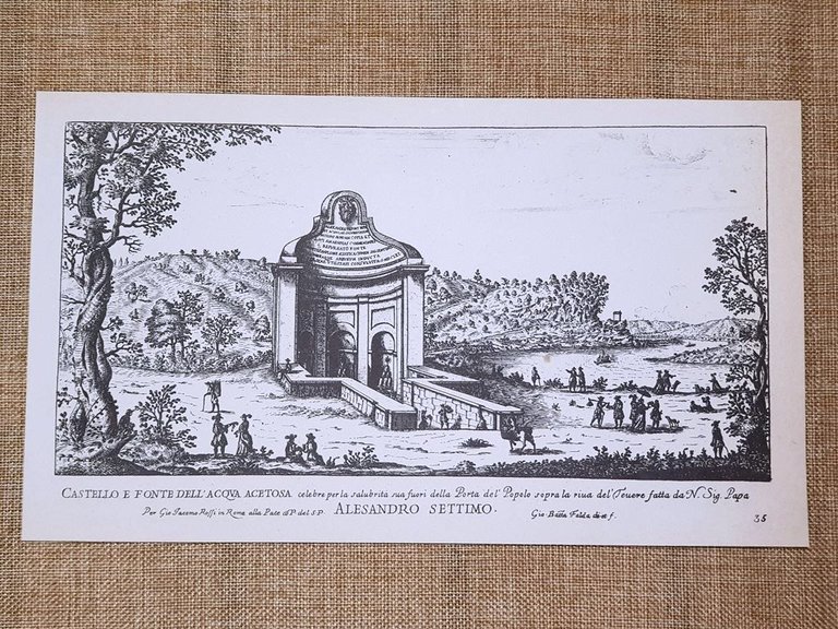 Roma Castello e Fonte dell'Acqua acetosa Incisione Battista Falda 1665 Ristampa