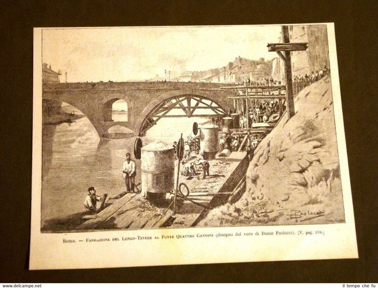 Roma nel 1886 Fondazione del Lungo - Tevere al Ponte Quattro Cantoni