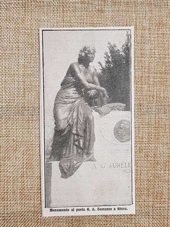 Roma nel 1914 Monumento al poeta G.A. Costanzo Lazio Rara stampa estratta da pubblicazione del 1914 Roma nel 1914 Monumento al poeta G.A. Costanzo Lazio Codice prodotto: VIP-174  Dimensioni Cm 12,00 x 6,00