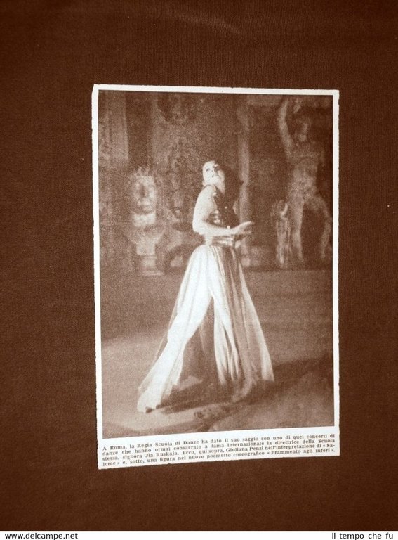 Rara Stampa Estratta da rivista d'epoca del 1943 . .stampa che ha quindi oltre 74 anni! Roma nel 1943 Regia scuola di danze di Jia Ruskaja Giuliana Penzi interpreta Salomè II1943-002 Dimensioni Cm 12,00 x 18,00 Qualora vogliate delle scansioni migliori contattateci, soddisferemo ogni vostra richiesta. PaypalCarta di creditoBonifico bancario Accuratamente adagiate su un cartoncino e protette da pellicola trasparente rigida,il tutto viene inserito dentro plico di adeguate dimensioni per proteggerne l'integrità.