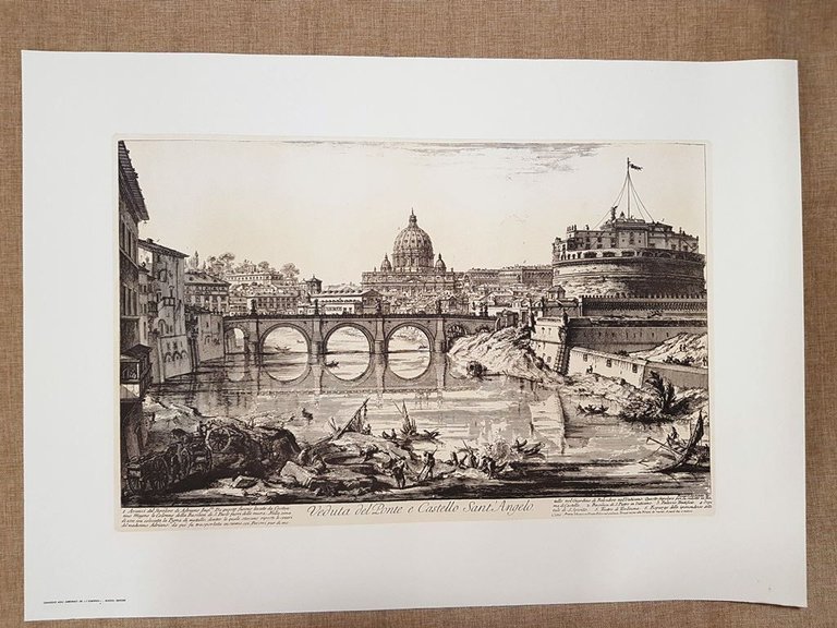 Roma Ponte e Castel Sant'Angelo Grande litografia Giamb. Piranesi Cm 75x55 1970