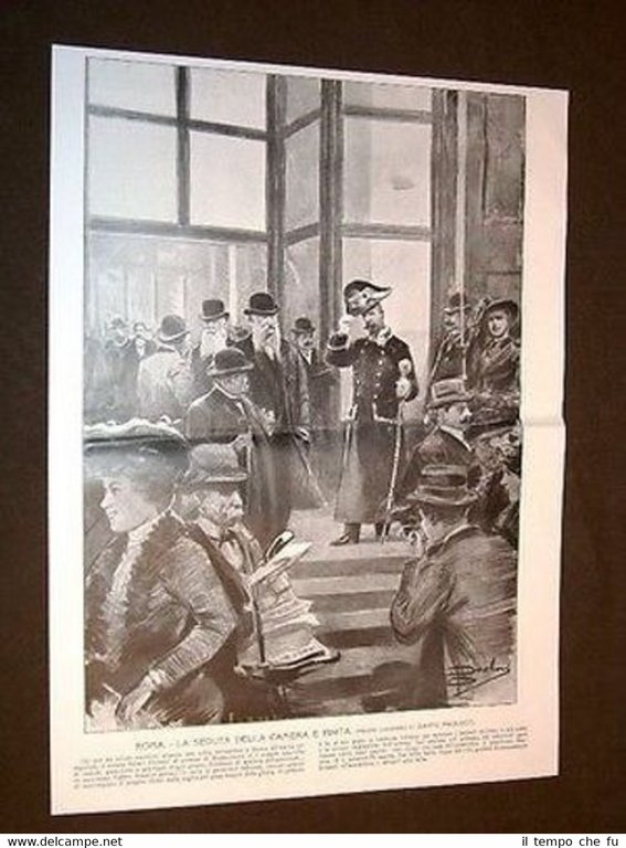 Rara Stampa Estratta da Rivista d'Epoca Roma La seduta alla Camera è finita di Dante Paolocci + Regina Margherita Alpinista Alpini II1905-033T Dimensioni Cm 26,50 x 36,00 + Cm 16,00 x 12,00 + Cm 16,00 x 12,00 + Cm 16,00 x 12,00 Qualora vogliate delle scansioni migliori contattateci, soddisferemo ogni vostra richiesta. Paypal Carta di credito Bonifico bancario Accuratamente adagiate su un cartoncino e protette da pellicola trasparente rigida il tutto viene inserito dentro plico di adeguate dimensioni per proteggerne l'integrità