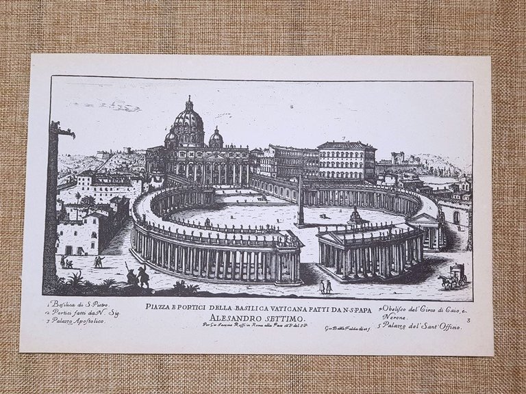 Roma Vaticano e portici alla cappella Incisione G. Battista Falda 1665 Ristampa Rara stampa estratta da pubblicazione di metà '900 Roma Basilica Vaticana e portici che conducono alla cappella pontificia Codice prodotto: GEO-175 Dimensioni fronte/retro: Cm 24,00 x 15,00 + Cm 24,00 x 15,00 Ristampa di una celebre tavola estratta dalla rara pubblicazione "Il nuovo teatro delle fabriche, edificii e delle chiese di Roma" Autore: Giovanni Battista Falda Anno di pubblicazione: 1665