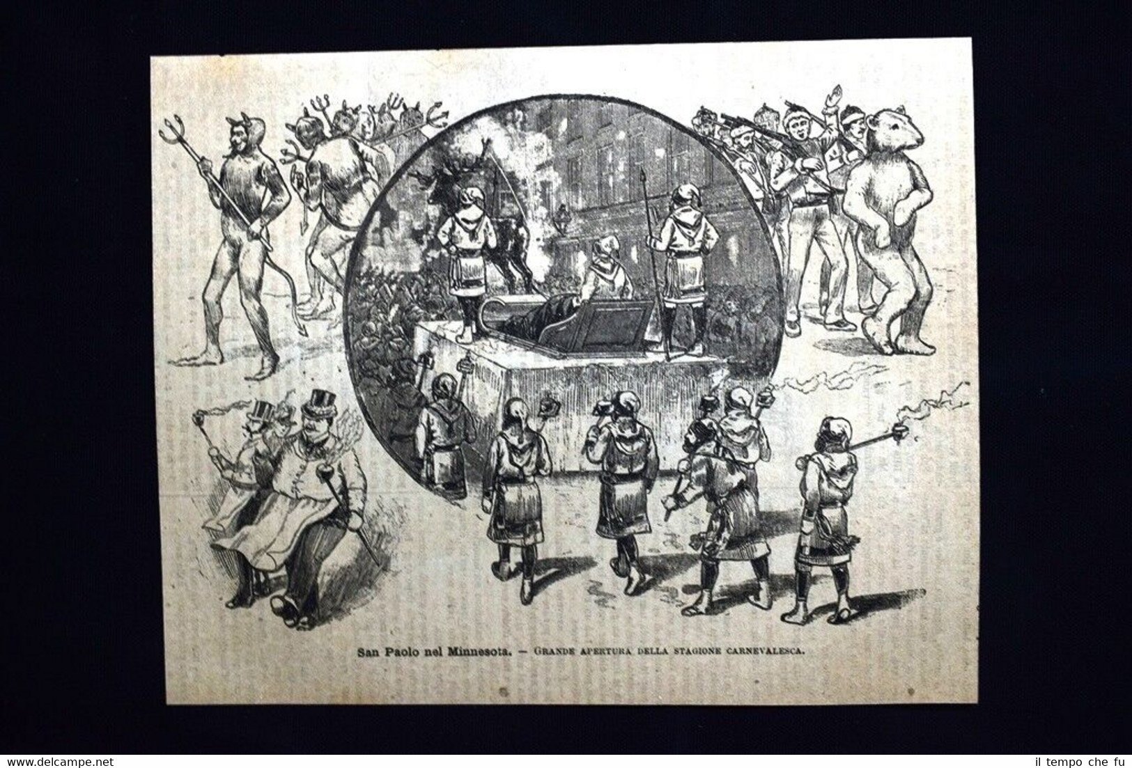 Rara incisione estratta da pubblicazione del 1885. .incisione che ha quindi oltre 132 anni! San Paolo nel Minnesota - Grande apertura della stagione carnevalesca Dimensioni Cm 22,00 x 18,00 EP1885 - 001 Qualora vogliate delle scansioni migliori contattateci, soddisferemo ogni vostra richiesta. Paypal Carta di credito Bonifico bancario Accuratamente adagiate su un cartoncino e protette da pellicola trasparente rigida, il tutto viene inserito dentro plico di adeguate dimensioni per proteggerne l'integrità.