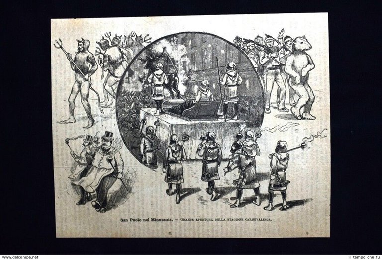 San Paolo nel Minnesota - Grande apertura del Carnevale Incisione del 1885