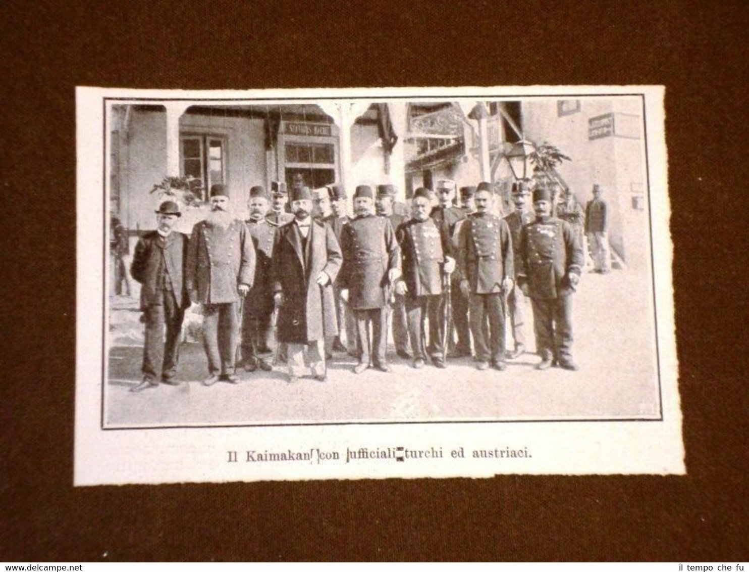 Rara Stampa Estratta da Rivista d'epoca del 1908 Sangiaccato di Novi Bazar nel 1908 Restituito dall'Austria alla Turchia Kaimakan con ufficiali di Turchia e Austria II1908-047T Dimensioni Cm 12,00 x 8,00 Qualora vogliate delle scansioni migliori contattateci, soddisferemo ogni vostra richiesta. Paypal Carta di credito Bonifico bancario Accuratamente adagiate su un cartoncino e protette da pellicola trasparente rigida il tutto viene inserito dentro plico di adeguate dimensioni per proteggerne l'integrità