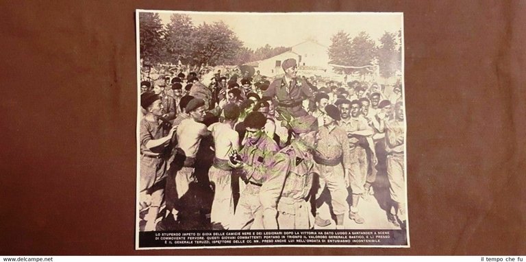 Rara stampa estratta da pubblicazione del 1937. .stampa che ha quindi oltre 83 anni! WW2 Seconda guerra mondiale Santander nel 1937 Gioia delle Camicie nere e dei Legionari dopo la vittoria Si porta in trionfo il Generale Bastico Cantabria Spagna Codice articolo: VIP-027 Dimensioni: Cm 27,00 x 24,00 Paypal Carta di credito Bonifico bancario Spedizione con posta ordinaria o raccomandata scelta dall'Acquirente nel momento del pagamento Clicca qui per accedere al nostro Store ed al suo sterminato archivio